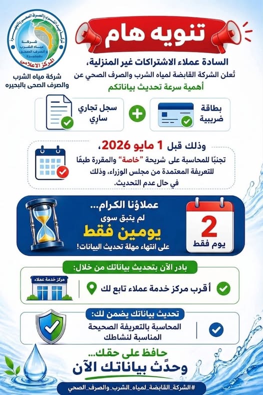 في إطار الاستعدادات المبكرة لاستقبال فصل الصيف، وحرصًا على ضمان استمرارية تقديم خدمات مياه الشرب والصرف الصحي بكفاءة عالية، قام السيد المهندس/ أحمد عبد المنعم التراس – رئيس مجلس الإدارة والعضو المنتدب
