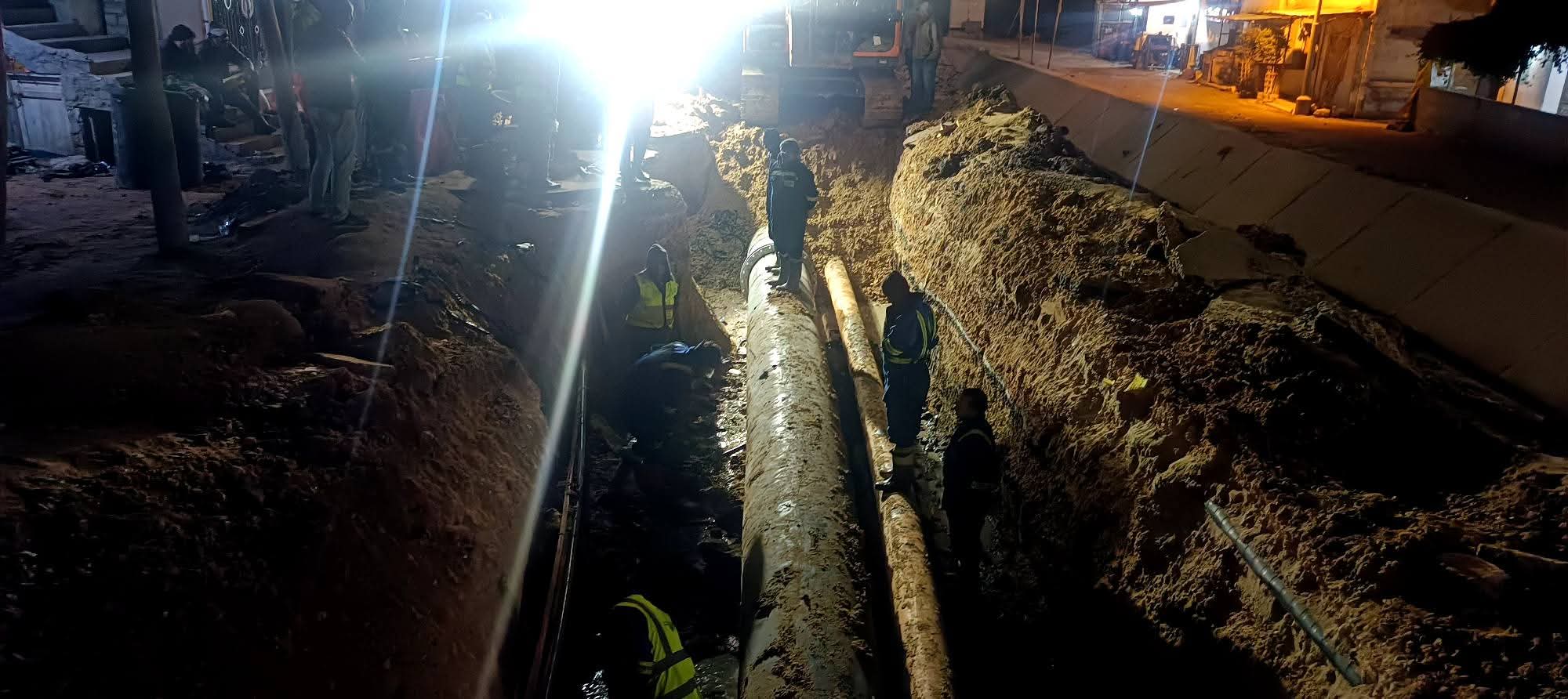 وجاء الانتهاء من الأعمال عقب مجهود متواصل لفرق الطوارئ والصيانة، تحت متابعة ميدانية مباشرة من السيد المهندس أحمد عبد المنعم التراس رئيس مجلس الإدارة والعضو المنتدب، الذي تواجد بالموقع حتى انتهاء الأعمال، حرصًا على سرعة إعادة الخدمة مع الالتزام الكامل بمعايير السلامة المهنية، خاصة في ظل صعوبة موقع الكسر وملاصقته لخط غاز.