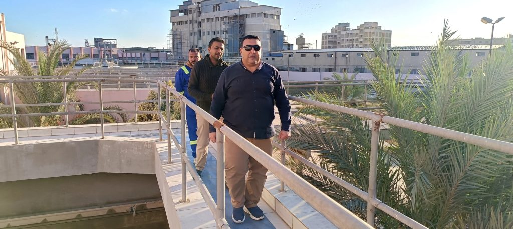 وخلال الزيارة، تفقد سيادته جميع مراحل التشغيل والمعالجة داخل المحطة، بداية من عنبر طلمبات المياه العكرة، وعنبر الكلور، ومبنى المروقات، ومبنى المرشحات، وعنبر طلمبات المياه المرشحة بخزان المياه المرشحة، وانتهاءً بمأخذ المحطة.