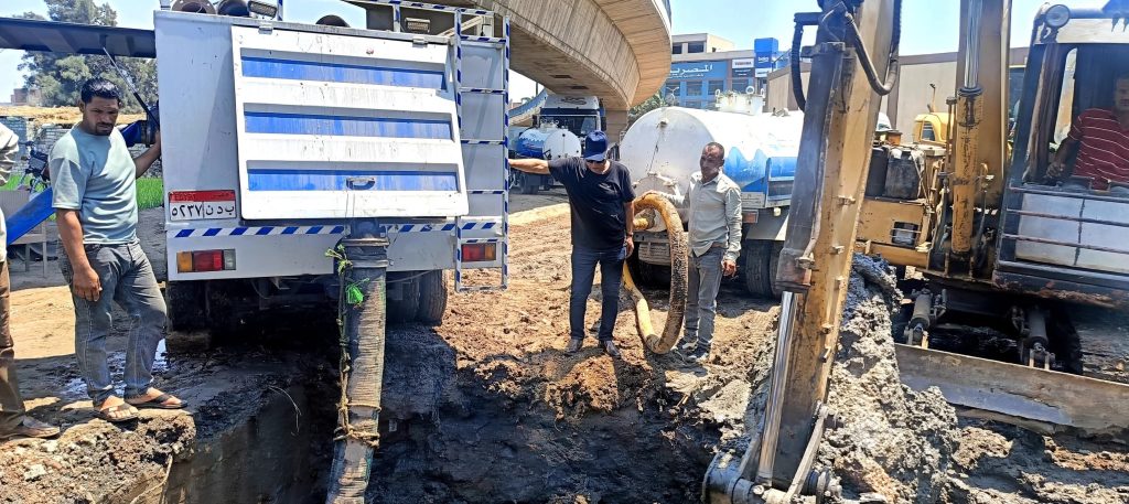 الفرق الفنية والعمالية تعمل بكامل طاقتها وبدون توقف، وسط جهود مكثفة من كافة فرق الطوارئ والمعدات الثقيلة، من أجل سرعة الانتهاء من الإصلاح وعودة ضخ المياه في أقرب وقت ممكن