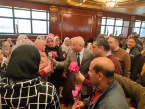 وفي نهاية الحفل قدم سيادته هديته لكل ام ودرع التقدير والعرفان وقام بتقديم الورود الي جميع الزميلات بالشركه