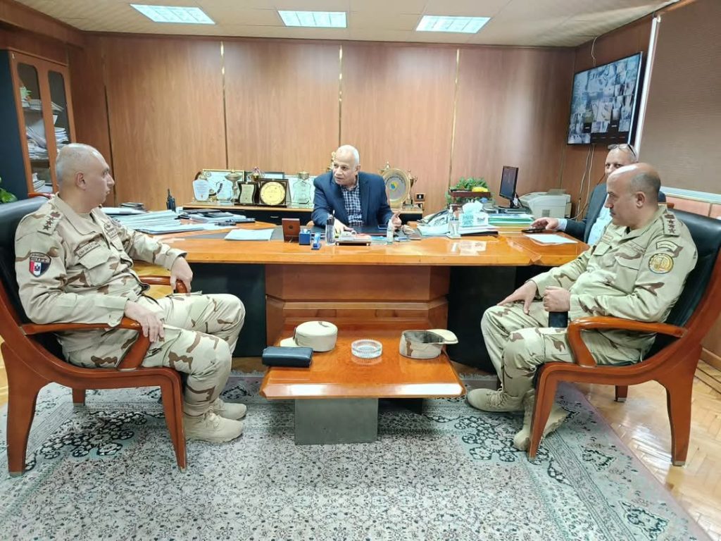 في إطار جهود الدولة المصرية للنهوض بالبنية التحتية وتحسين جودة الخدمات المقدمة للمواطنين، استقبل السيد المهندس محمد سعيد نشأت، رئيس مجلس الإدارة والعضو المنتدب لشركة مياه الشرب والصرف الصحي بالبحيرة، بمكتبه صباح اليوم، معالي اللواء أ.ح. أشرف علواني حجازي، رئيس أركان إدارة المياه بالهيئة الهندسية للقوات المسلحة، والسيد اللواء أ.ح. محمد عبد الفتاح، مدير مشروعات البحيرة بالهيئة الهندسية، والسيد العقيد أ.ح. سامر محمد عبد الوهاب، رئيس فرع المياه بالمنطقة الشمالية العسكرية، والسيد المقدم إسلام متولي، والسيد النقيب محمود فصاد، والمهندس عمر خضر، رئيس قطاع البحوث بالشركة، لمناقشة مشروعات مياه الشرب والصرف الصحي الجاري تنفيذها ضمن المبادرة الرئاسية “حياة كريمة” بمحافظة البحيرة.