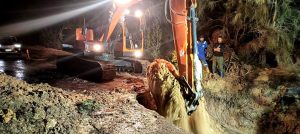 “نتابع الموقف ميدانيًا بشكل مباشر، ووجهنا باستمرار العمل بكامل الطاقة والدفع بكل المعدات والفرق الفنية اللازمة، للتعامل السريع مع الكسر والانتهاء من أعمال الإصلاح في أقل وقت ممكن.