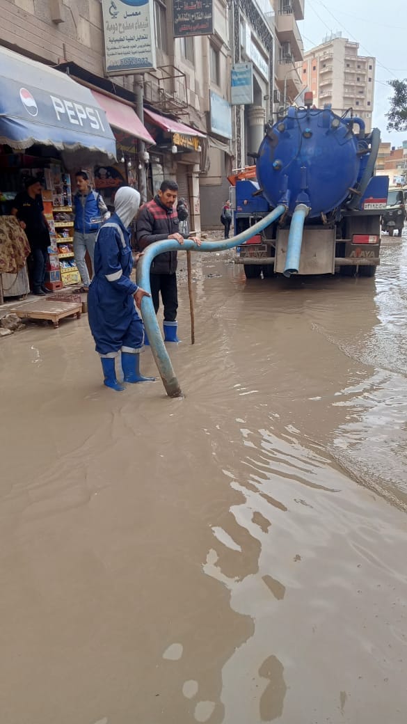 بناء علي تعليمات السيد اللواء مهندس محمد سعيد نشأت رئيس مجلس الاداره والعضو المنتدب بشركة مياه الشرب والصرف الصحى بالبحيره سيارات شفط المياه ومعدات و رجال الشركه بجميع فروع الشركه أثناء رفع مياه الأمطار منذ فجر اليوم 19/11/2023 العمل متواصل بالشوارع والميادين .