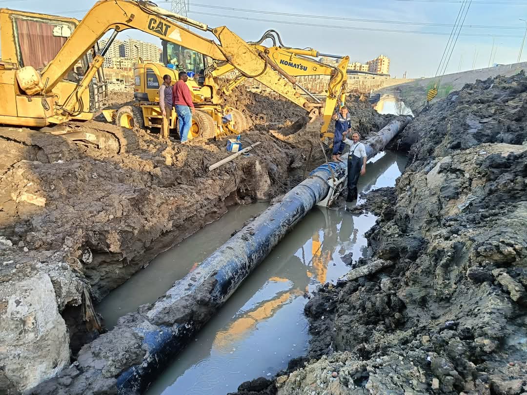 تم الانتهاء من أعمال إصلاح الكسر المفاجئ في خط مياه الشرب قطر 630 مم بولي إيثيلين – رافع صلاح العبد بوادي النطرون، مارس 28, 2025